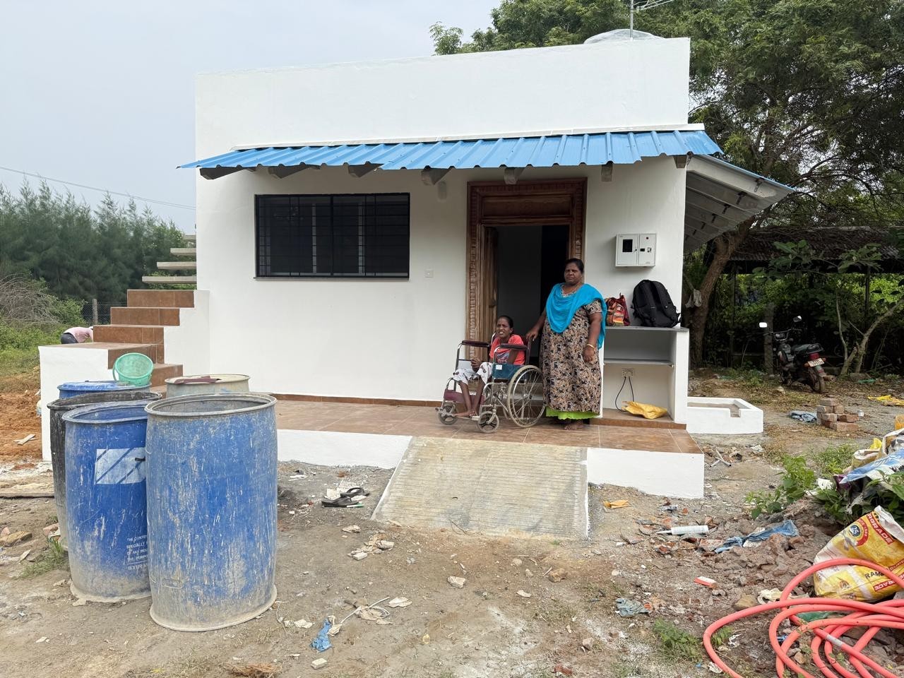 Ihr Haus ist baufällig und bietet kaum Schutz in der Regenzeit. Als die Mutter um Hilfe bat, beschloss Deepam, den Bau eines einfachen, sicheren Hauses zu finanzieren – mit solidem Fundament, einem Wohn- und Schlafzimmer, kleiner Küche und behindertengerechtem Bad.